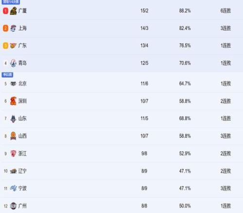 CBA最新排名!上海紧咬广厦居前2,辽宁跌至第十,新疆有望觉醒!